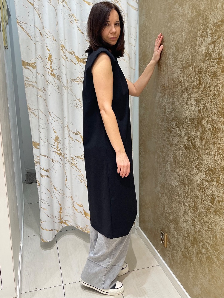 Sedí na S/MMíry: prsa 50 cm, boky 54 cm, délka 112 cmSložení: 53%bavlna, 38% polyamid, 9% elastan