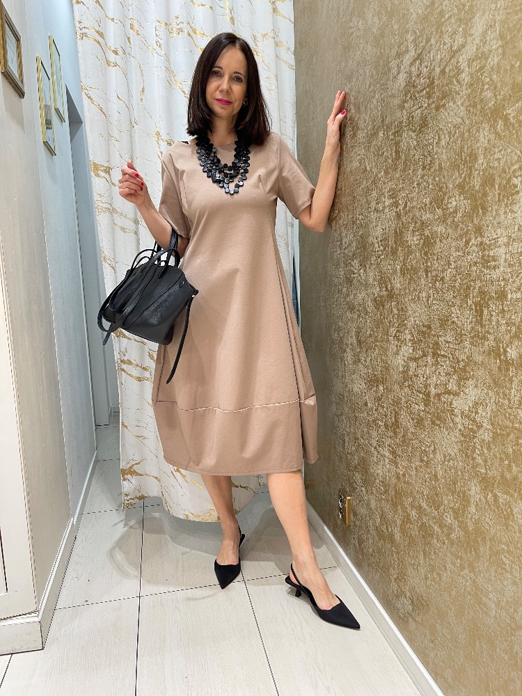 Sedí na S-LMíry: prsa 46 cm, pas 44 cm, boky 66 cm, délka 112 cmSložení: 53%bavlna, 38% polyamid, 9% elastan